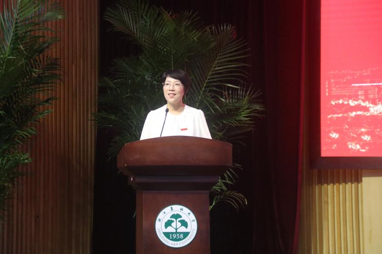 党委书记梁卫玲欢迎辞,送给新生“以大地为师、以创新为任、以时代为卷”三颗“希望的种子”。希望新生尽快转变角色,明确奋斗目标,做好职业规划,正式开启精彩、充实的大学生活。