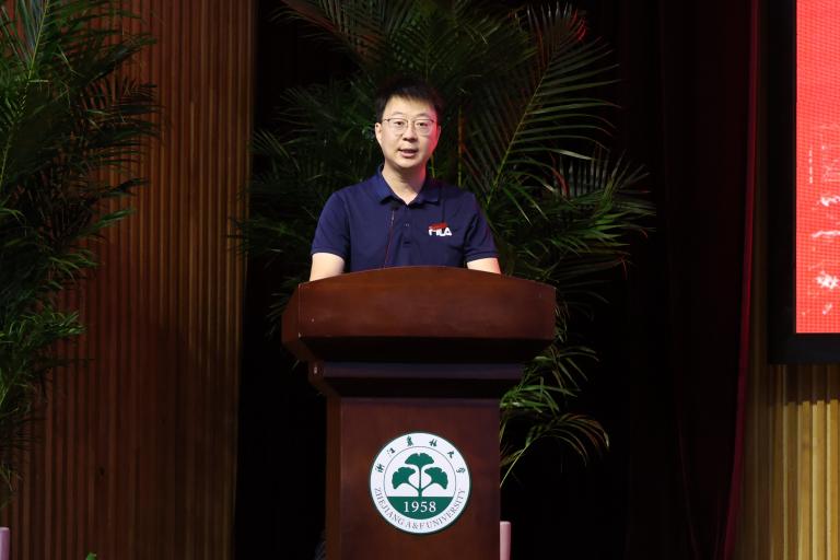 作物学教师张传忠作为教师代表发言,他对新生的到来表示欢迎,希望新生要扎根土地,厚植情怀,勇于担当起强农兴农的使命,努力成为引领未来农业科技发展的核心力量。