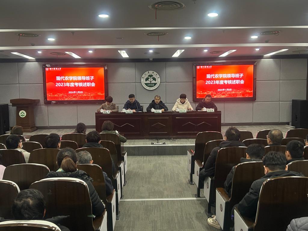 1月8日,学院在图书馆第二报告厅召开2023年度领导班子考核述职大会。校党委组织部离退休办公室主管金飞凤到会指导,学院党政班子成员及全体教职工参加。会议由副院长赵光武主持。