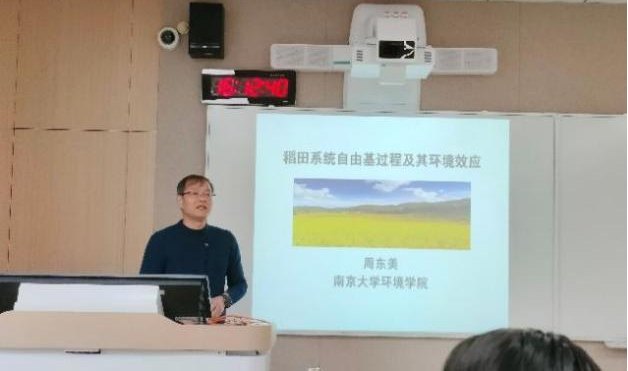 周东美教授作了题为“稻田系统自由基过程及其环境效应”的学术报告,详细介绍了稻田土壤、根际和上覆水中的自由基产生机制,并探究了活性炭引发还原性物质在氧化过程中的自由基暗生成过程。报告结束后,周东美教授与大家进行深入的交流和广泛的讨论。