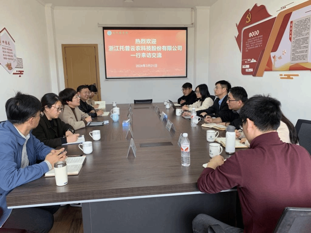 3月21日,浙江托普云农科技股份有限公司智慧农业研究院执行副院长姚晟、高级总监谢朝明等一行6人考察学院,就推进与学院的深度合作进行了充分交流,学院党委书记梁卫玲、副院长周国鑫出席会议,学科教师代表参加座谈。