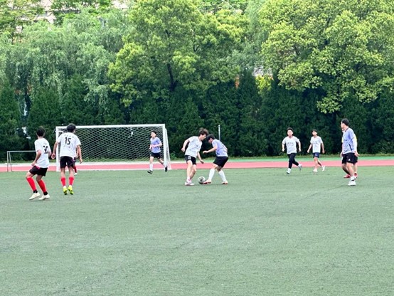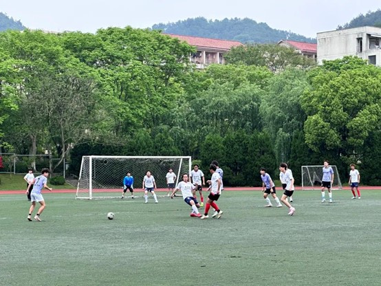 上场前,队员们开始进行热身活动,相互加油打气,为接下来的比赛做准备。比赛正式开始,双方迅速进入状态。我院足球队员积极跑动、默契配合,在绿茵场上奔跑、拼抢,努力为观众呈现一场精彩的比赛。
