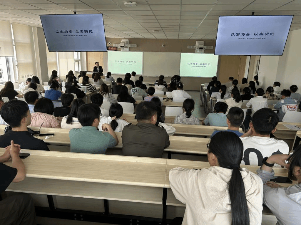 5月10日,学院组织师生党员开展党纪学习教育,特邀学校纪委委员、文法学院马永双教授作辅导报告。学院党委书记梁卫玲、党委副书记宋春春及师生党员代表参加。