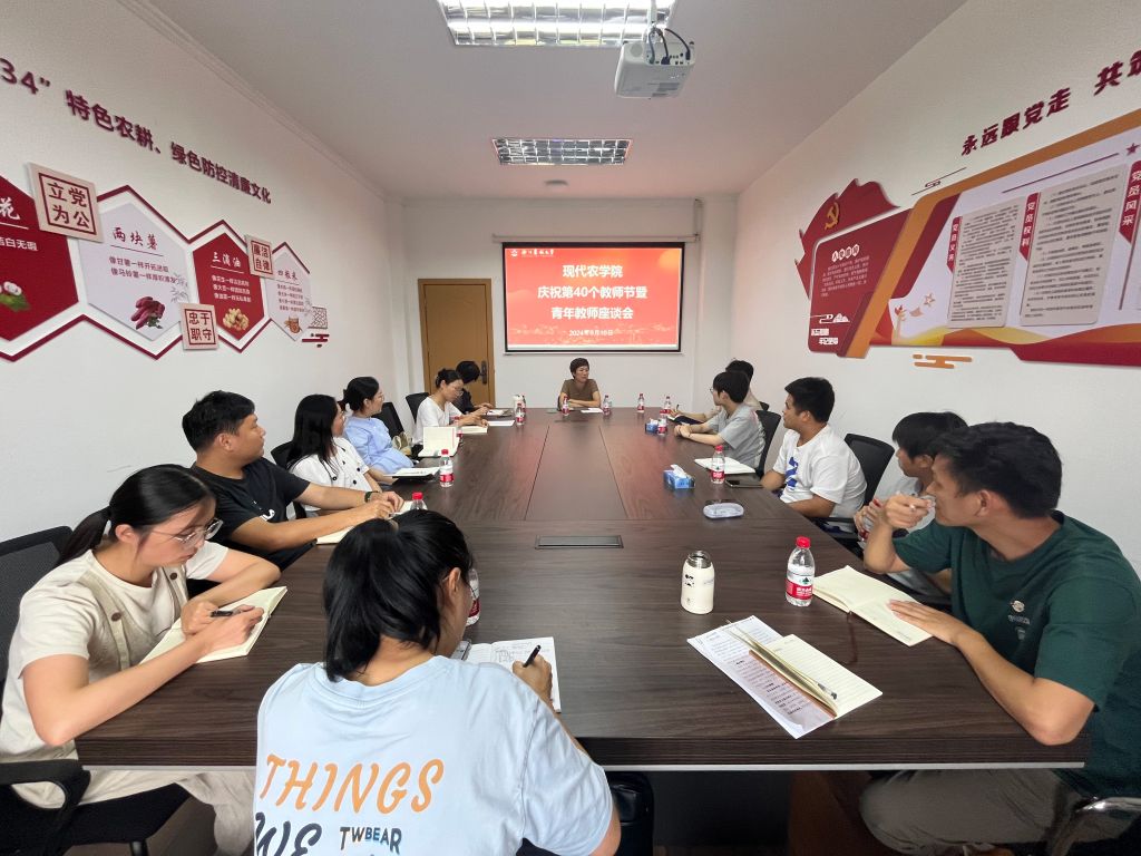 为进一步强化师资队伍建设,助力青年教师更好融入学院,在迎来第40个教师节之际,现代农学院于9月10日举办了青年教师座谈会。座谈会由学院党委书记梁卫玲主持,党委副书记宋春春、工会主席李飞飞、各学科教师代表以及2024年新入职的青年教职工出席了会议。