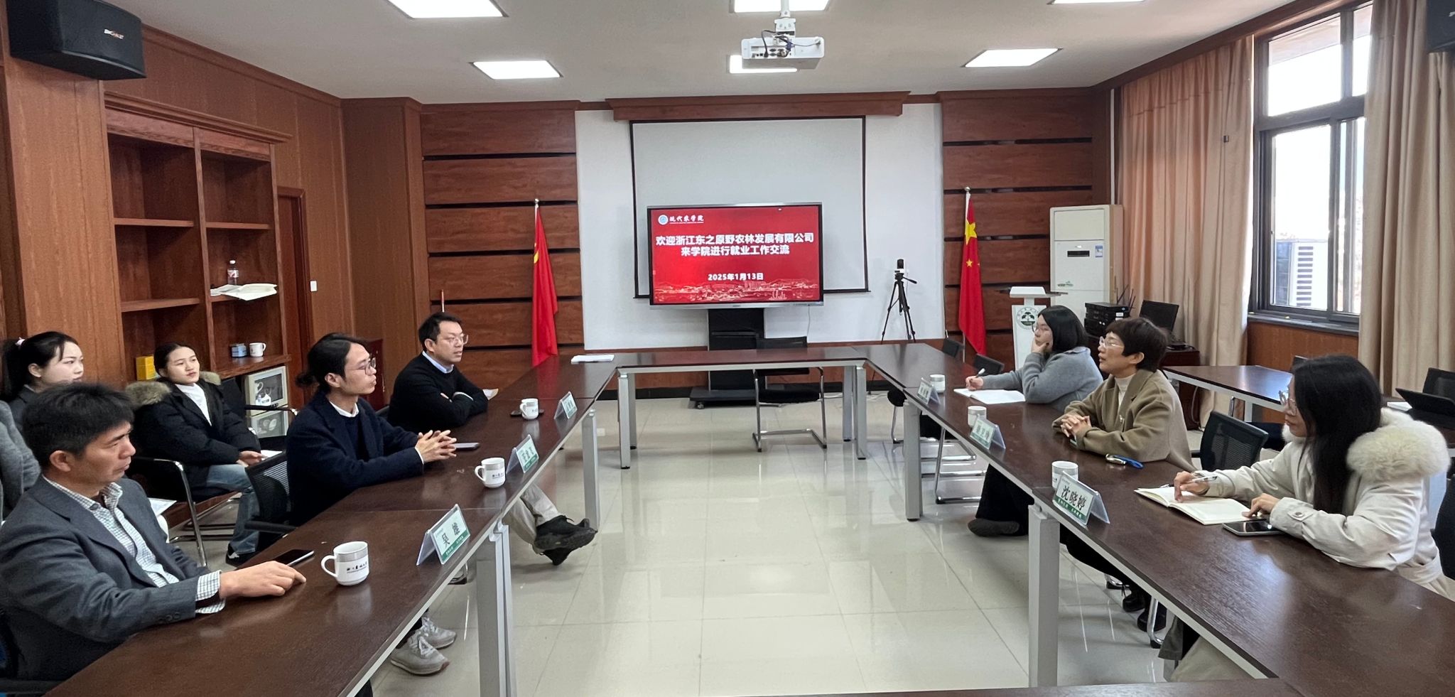 为加强校企合作,拓宽学生就业渠道,1月13日下午,浙江东之原野农林发展有限公司一行莅临我院,开展毕业生招聘面试。学院党委书记梁卫玲、学生办主任沈晓婷、毕业生辅导员及毕业生代表参加了此次交流。