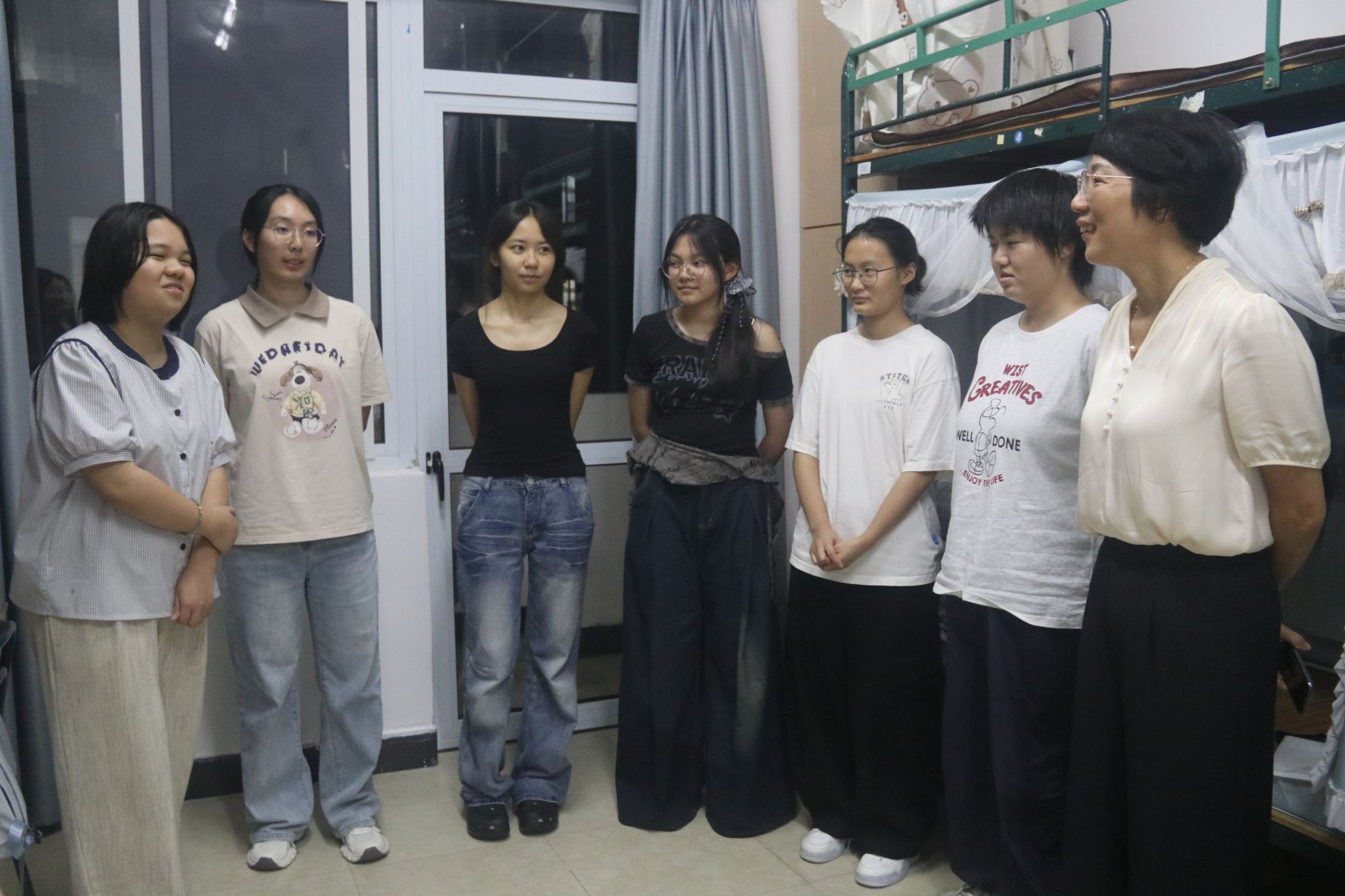 梁卫玲、宋春春一行深入本科女生宿舍看望新生,详细了解新生对校园环境的印象、生活适应情况及考研、就业等初步规划。针对各寝室不同特点,领导们提出个性化建议,强调地域差异带来的生活习惯多元,鼓励同学互谅互助,共建温馨寝室文化。她们勉励新生在夯实专业基础的同时,注重独立思考与生涯规划,努力成长为敢担当、有本领的高素质人才。