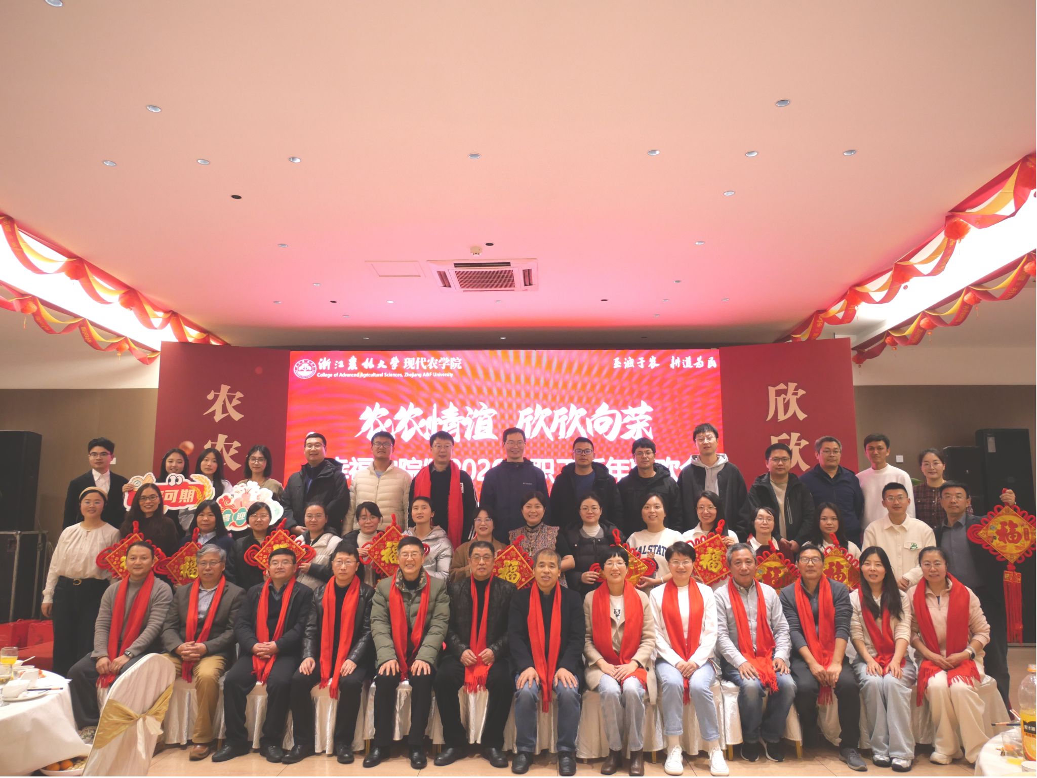 2026年1月15日,学院“农农情谊·欣欣向荣”2025年度教职工联欢会在西径三楼隆重举行。全院教职工欢聚一堂,共话过往成就,共迎新春新程。学院退休教师胥亮、徐志宏、汪一明应邀出席,学院党政领导班子全体成员全程参与活动。