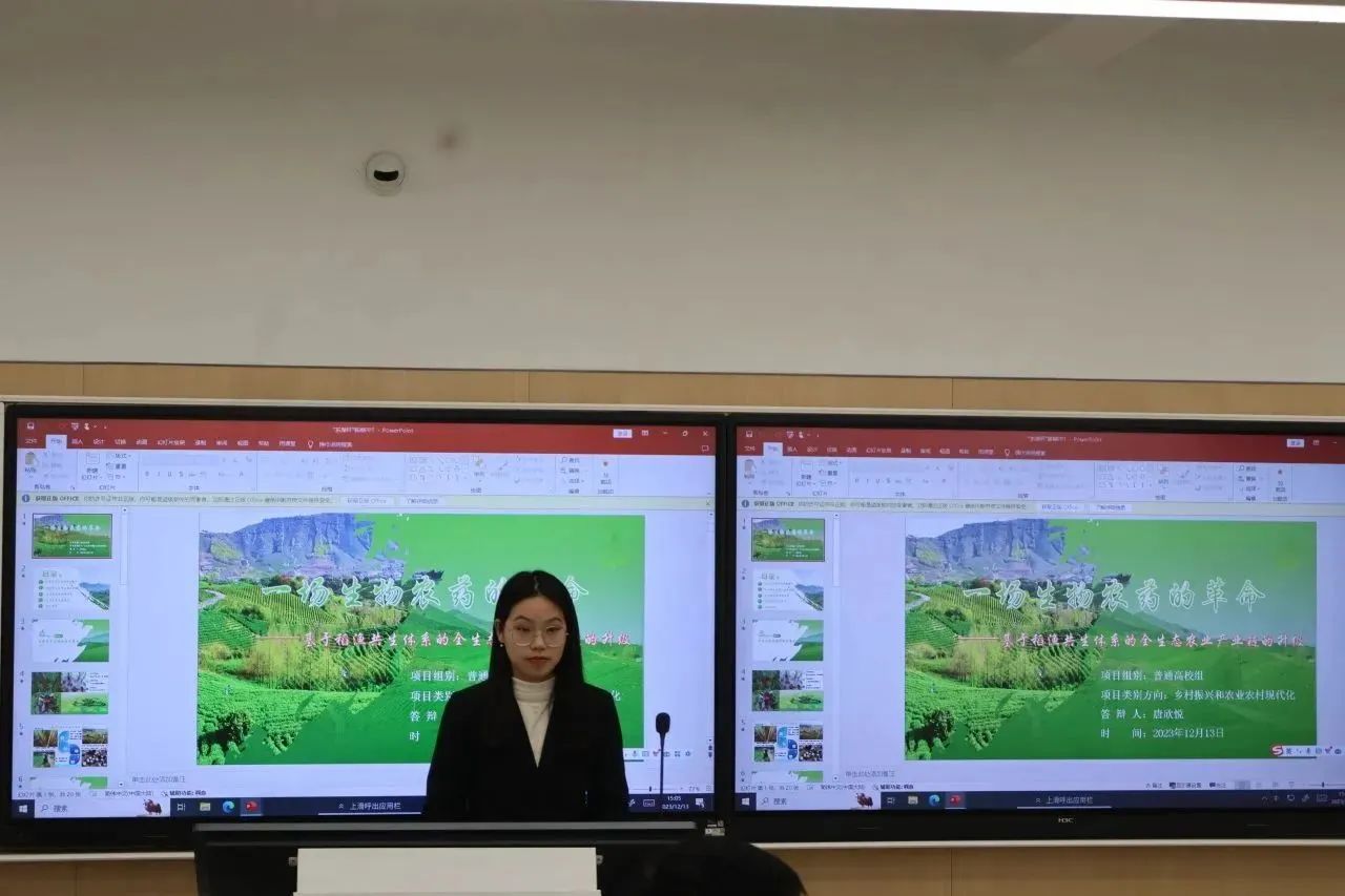 本次竞赛共有10支队伍参加答辩。各团队结合学科专业优势,以PPT汇报的形式全面展示了项目缘起、实践过程、市场分析、未来战略等内容,详细剖析项目的优势与特点。