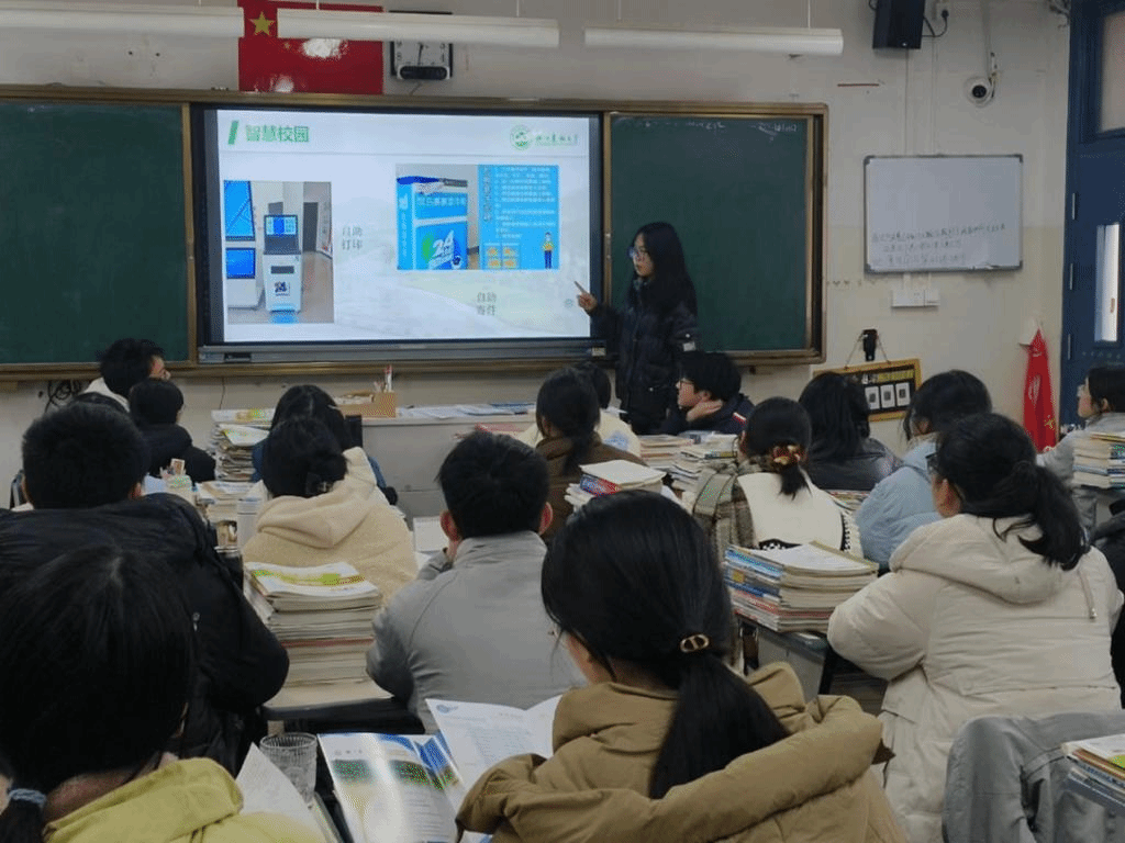 在回访母校招生宣传的过程中,各队伍通过线下走班宣传、校外摆摊宣讲及线上建群答疑等方式,给学弟学妹宣传我校概况、专业特色与招生政策,高中学子们积极咨询,现场氛围活跃。