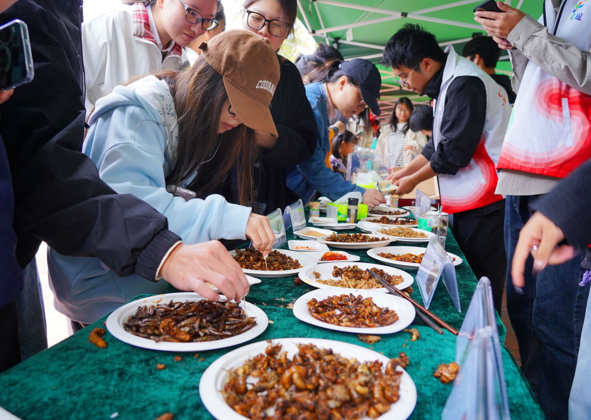 在昆虫文化节上,不仅有各色昆虫美食,还有昆虫标本及工艺作品展、昆虫科研成果展、昆虫摄影展、资源昆虫展、昆虫体验区、昆虫文化知识问答互动等丰富多彩的活动,学生们既可现场学习昆虫美食烹饪方式,也可以欣赏昆虫标本馆部分馆藏标本、昆虫创意作业,了解农业害虫诱捕器及绿僵菌等生物防治产品。