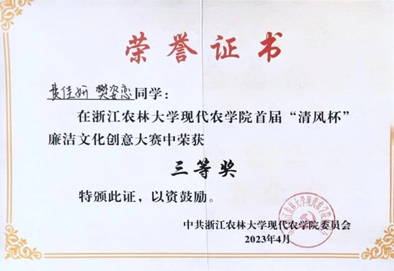 现代农学院首届“清风杯”廉洁文化创意