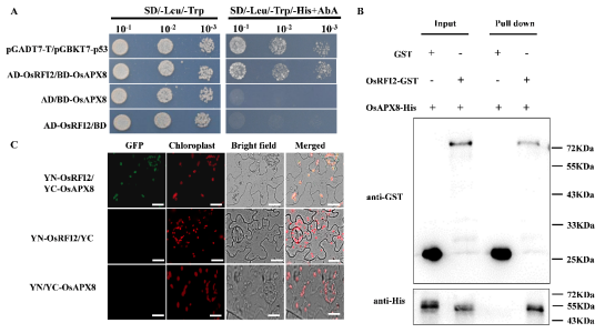 图1 OsRFI2与OsAPX8互作